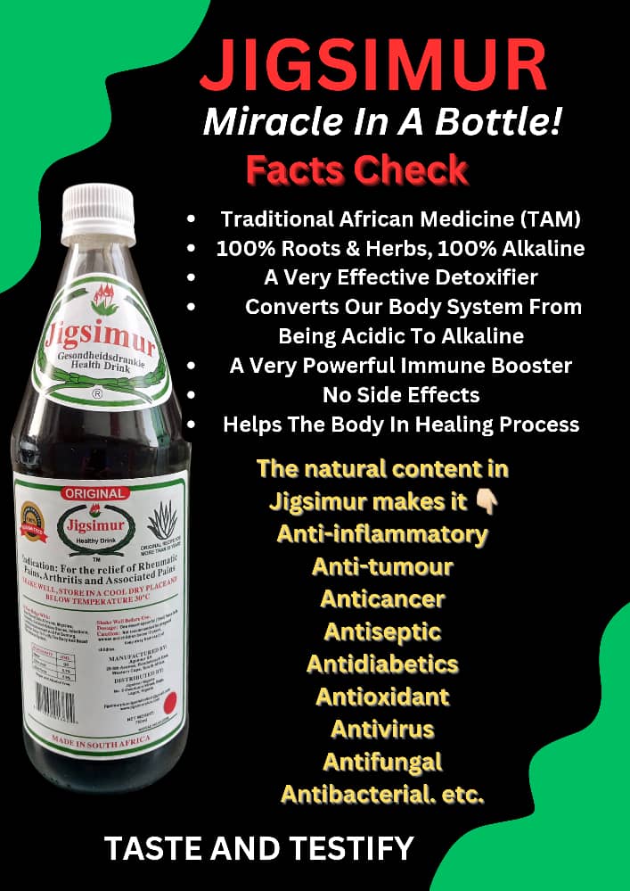 JIGSIMUR HERBAL is a TRADITIONAL AFRICAN MEDICINE from South Africa. The one stop SOLUTION for all diseases, be it chronic or minor. Such as CANCER, PROSTATE, KIDNEY DISEASES, DIABETICS, HIGH BLOOD PRESSURE, INFERTILITY (BOTH IN MALE AND FEMALE), OBESITY, FIBROID, ARTHRITIS etc.